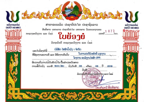 期间,老挝能源矿产部向老挝南芒河电力有限公司授予荣誉证书,表彰人生就是搏为老挝社会经济发展所作出的突出贡献。