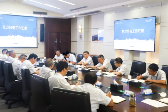 罗乾宜听取了东方风电近年生产经营情况、“十五五”规划及党建工作汇报。罗乾宜肯定了东方风电在生产经营、党建工作方面取得的成效,并对后续工作提出要求。