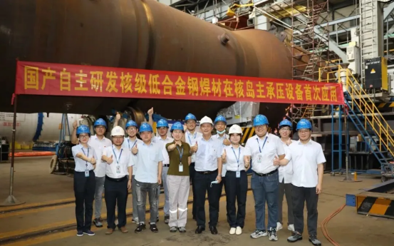核一级设备用耐辐照、高强度SA-508Gr.3钢用焊材料以“国和一号”蒸汽发生器为依托,2019年,东方重机、上海核工院与四川大西洋联合创建核电焊接材料国产化产学研用平台,合作期间,三方共同开展了不锈钢、低合金钢、镍基三大类共18种牌号焊材的研发与应用研究。2021年6月,成功应用于“国和一号”蒸汽发生器最终环缝,无损检测与理化性能一次性合格,实现了国产焊材在核岛主设备上“零的突破”,标志着核电焊接材料国产化取得重大里程碑进展。